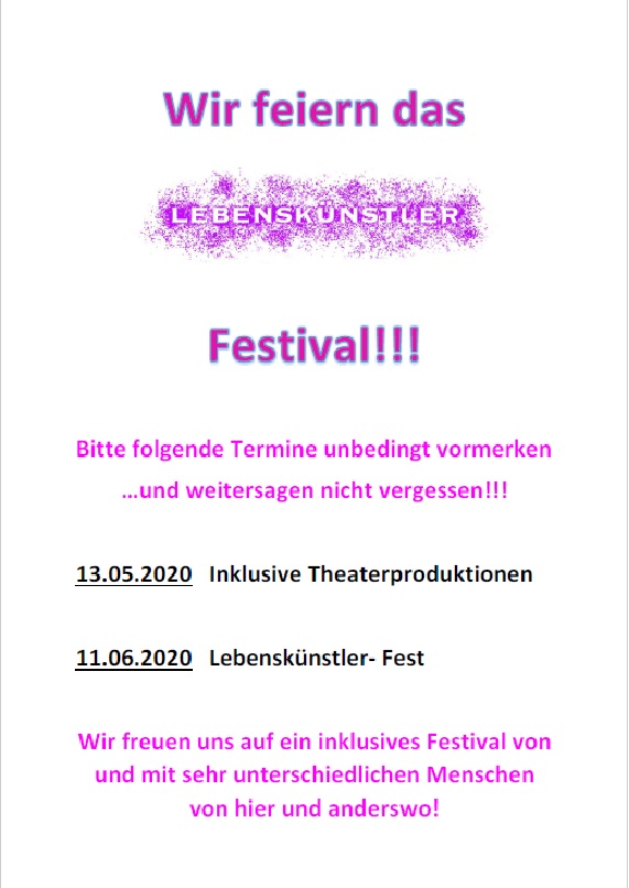 Auch wir als Lebenshilfe Mitte Vest e.V. sind in unterschiedlicher Weise von der Corona Pandemie betroffen. Wir können feststellen, dass es in unseren Reihen bisher eine große Bereitschaft gibt, die Situation gemeinsam zu meistern. Auch können wir beobachten, dass an vielen Stellen unserer Gesellschaft die Solidarität, das Mitgefühl und die Hilfsbereitschaft der Menschen zunimmt. Mit diesem Schreiben möchten wir um Ihre Solidarität und Hilfebereitschaft bitten.